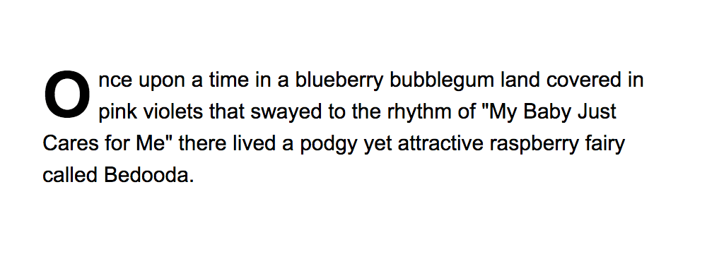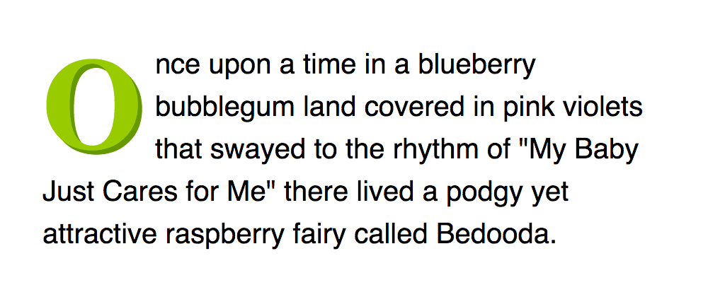 要创建首字母下沉(你知道的,就是段落开头那个大字母),你只需要增大段落第一个字母的大小并将其向左浮动即可。很简单。